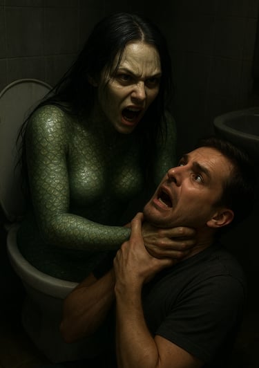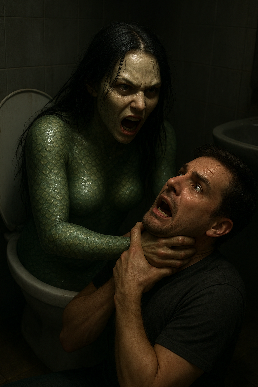 At night, I went to the bathroom (toilet) to urinate, and after I flushed the toilet, a Mermaid or Siren arose from the toilet water and began to choke me by my throat to kill me.