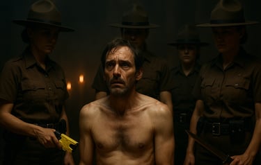 In my vision, “The Image of the Beast,” I saw the “blue line” 4–6 women in brown uniforms, torturing me like this, then, they cut me to worship The Beast.