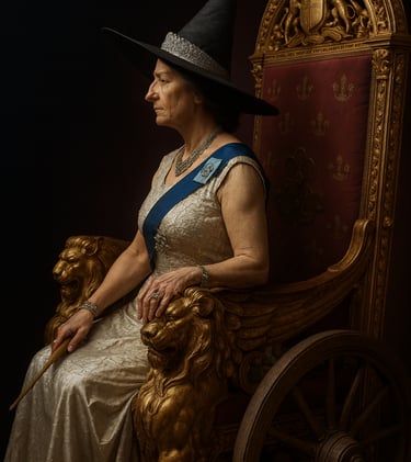 The woman was beautiful, about thirty-five years old, dressed in royal apparel adorned with gold and precious stones. Around her stood many strong men in dark uniforms—no women or children, only men of full age.